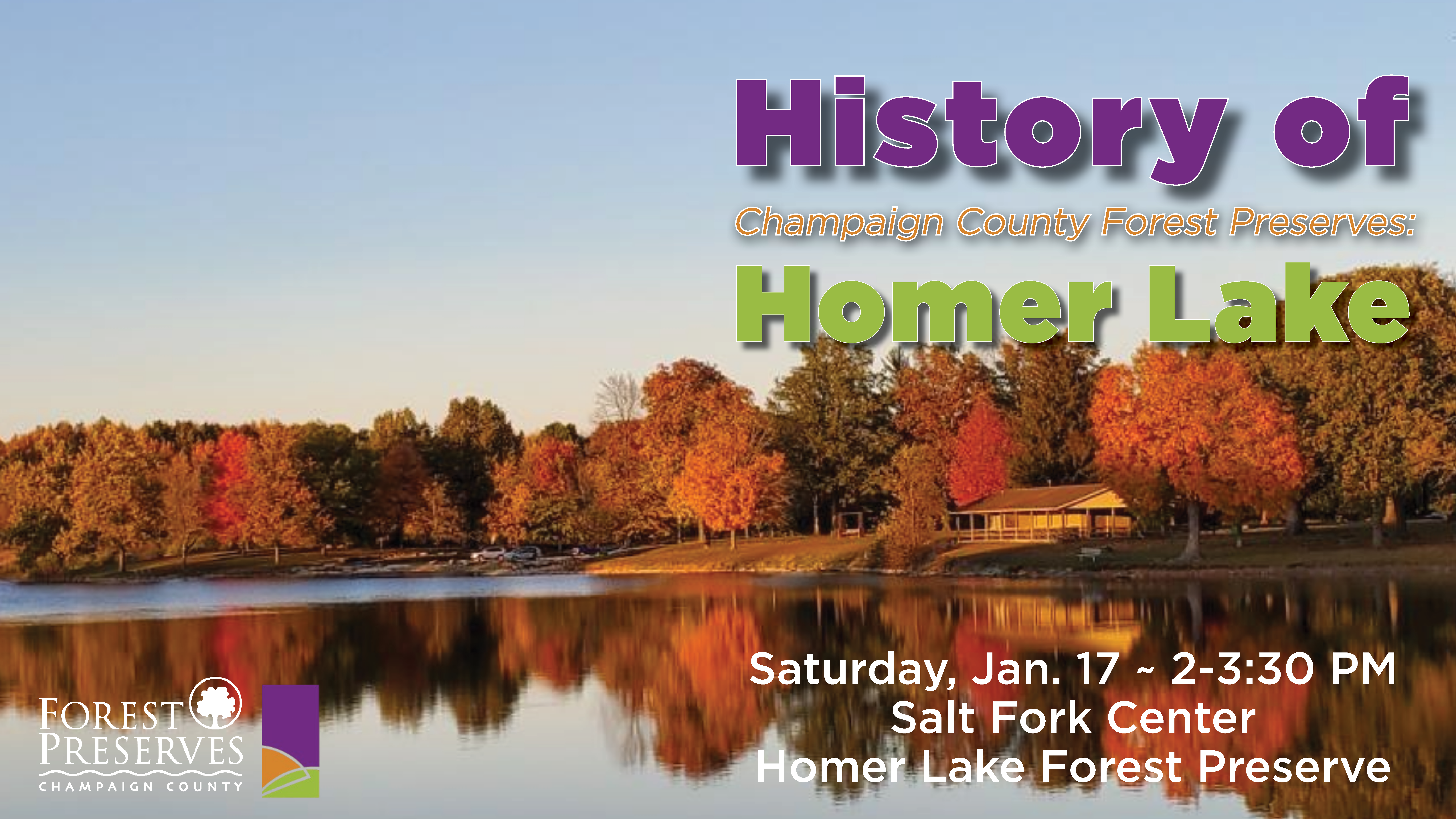 Join us for an informative presentation covering the history of Homer Lake Forest Preserve. Hear about the preserve’s early formation, development, and present-day offerings. Ideal for enjoyers of the preserve, or those unfamiliar with Homer Lake. Light refreshments will be provided. FREE. NO REGISTRATION REQUIRED. All ages. Children must be accompanied by an adult. For more info: (217) 586-2612 or jbien@ccfpd.org.
